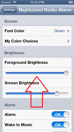 - If you know the URL of the music stream, go into the standard settings app, scroll down to Nightstand .Alarm (pictured at left), and look for the following setting: Radio Station URL. You can change it here for use as your wake-up station. Then send a note to support (link at lower left of this page) so I can include it in the next release.